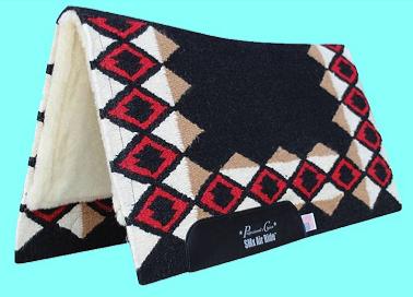 Developed from the horses back up, the Comfort-Fit SMx Air Ride Saddle Pad is contoured to follow the curve of the horses spine. As a result, the pad locks in place on the horses back, allowing full movement. The SMx 1/2" Air Ride core absorbs shock and improves saddle fit for ultimate equine comfort. The Air Ride core is made of a unique material found in the protective gear of professional human athletes for absorbing shock while allowing air flow to the skin, creating a natural cooling system that lowers the horses body temperature and slows the rate of fatigue. The soft merino wool lining that wicks away moisture.