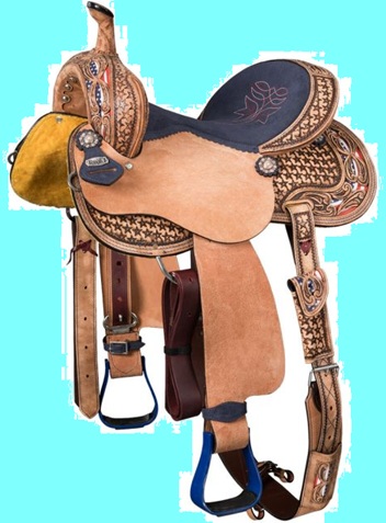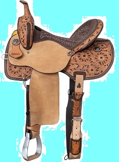 The whimsical Tough1 Butterfly Saddle combines fun with function! Adorned with beautiful hand-painted butterflies, brightly colored sunflowers and sparkling gemstone conchos, this saddle will look great on any kid's horse or pony. The deep suede seat, with embroidered butterfly detail, provides great balance and security for young riders while the roughout jockeys and fenders offer excellent grip for the legs. Other features include stainless steel in-skirt rigging, quick change fender buckles, and lightweight aluminum stirrups. Features Swell: 12 1/2", Gullet: 7", Cantle: 5 1/2", Skirt: 24" x 24", Rigging: In-Skirt, Weight: 24lbs, Tie Strap: 1 3/4" x 56", Off Billet: 1 1/2" x 15", Stirrup Neck: 2 1/2", Horn Height: 4", Horn Diameter: 2 1/2", Inseam: 21"-28"(measurements vary by size)
